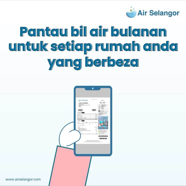 Daftar di https://update.airselangor.com atau muat turun aplikasi Air Selangor.
